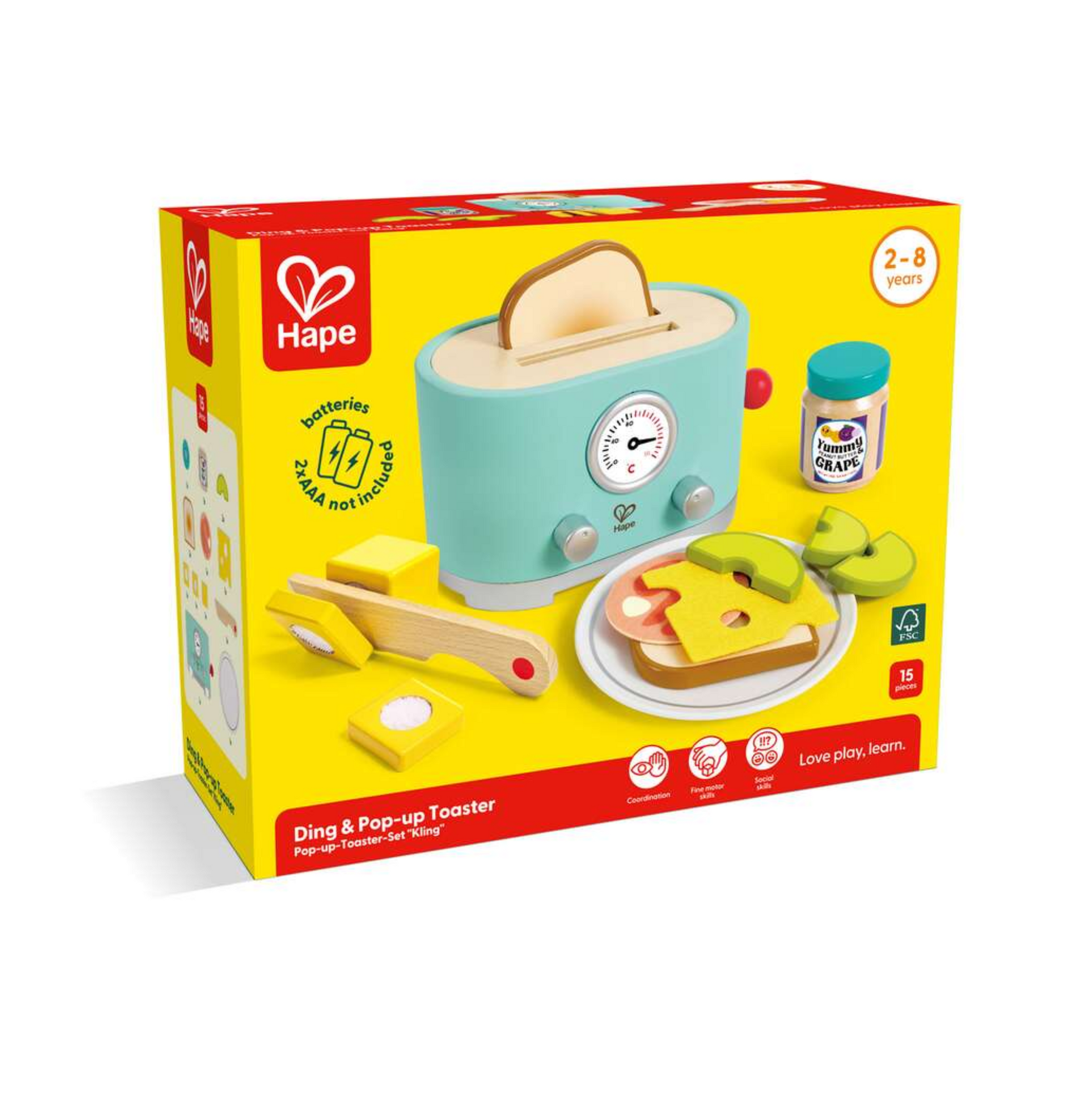 - DÉVELOPPE LA MOTRICITÉ : la manipulation du levier de grille-pain, l’insertion des aliments factices et le retrait des tranches grillées améliore la coordination des mains et yeux ainsi que la motricité.